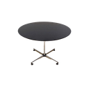 USM Haller Kitos Sitzungstisch, Besprechungstisch, Beistelltisch, Esstisch, Küchentisch, Pausentisch 1963 entwickelten Haller und Schärer ein Möbelbausystem, welches an die Modularität und Vielseitigkeit des neuen Gebäudes angepasst war. Dieses Mobiliar, wie die Gebäude, basierte nicht auf einzelnen Möbelstücken, sondern auf einem System anpassbarer, neu arrangierbarer Stahlmodule, um so die vielfältigen Anforderungen der Fabrik und der Büroräume des Unternehmens erfüllen zu können. Das Herzstück des Systems war die elegante und raffinierte Kugelverbindung, für die 1965 das Patent beantragt wurde. Obwohl das Möbel ursprünglich nur für die Verwendung in den USM eigenen Büros konzipiert worden war, erregte die Kombination aus einzigartigem Design gepaart mit Vielseitigkeit und Langlebigkeit sehr schnell immer mehr Aufmerksamkeit. Im Jahr 1969 war die Möblierung von 600 Einzelarbeitsplätzen für die Bank Rothschild, Paris, der Beginn der Serien-Produktion und des Verkaufs des USM Möbelbausystems Haller. Farbe: Schwarz Material: Stahl, Eichenfurnier B/H: 110 / 74cm Zustand: Gebraucht mit Gebrauchsspuren